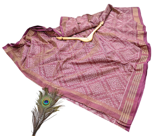Indian Vintage Sari pink & White Pure chanderi Silk tie-dye Printed Saree 5Yd Fabric Soft Zari Border Ethnic Upcycle Crafting Dress making
