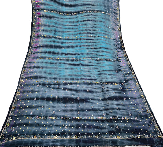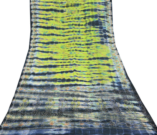 Indian Vintage Multi Saree Pure Crepe Silk Hand Embroidered Tie-Dye Sari Fabric 5yard Sewing Craft Fabric Ethnic Sequins Dressmaking