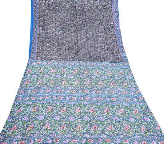 Indian Vintage Sari Blue Printed Pure Cotton Sarees Craft Fabric 5Yd Soft Sewing Sarong Wrap Boho Floral Quilting Dress making
