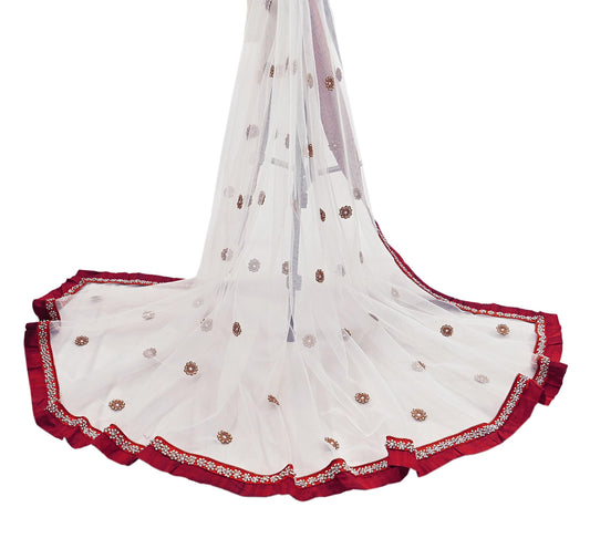 Indian Vintage Heavy white Dupatta Net Mesh Long Stole Hand Embroidered Scarves Golden Zardozi Zari Sequins Hijab Veil wrap Boho