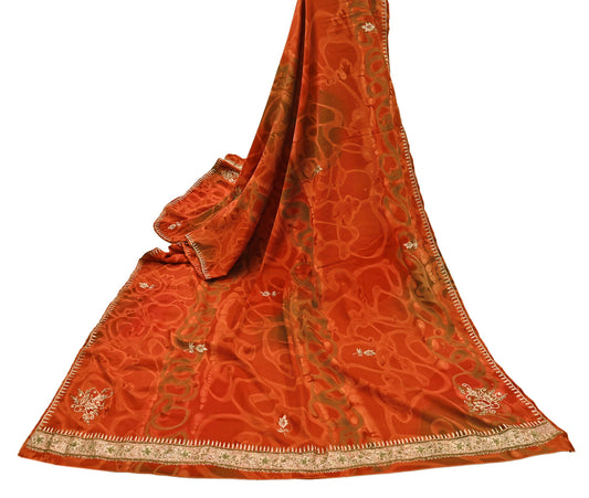 Indian Vintage Dupatta Orange Artificial Silk Long Stole Embroidered Scarves Floral Design Stole Veil Wrap Zardozi/ Dabka, Zari