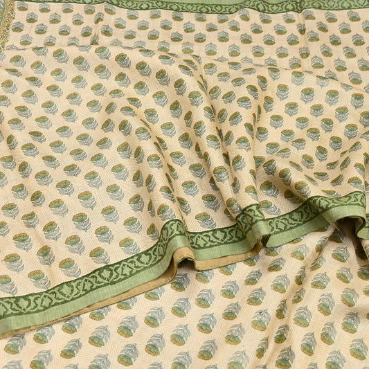 Indian Vintage Sari Beige Pure Georgette Silk Printed Sarees 5Yd Craft Fabric Sewing Quilting Dress making Crafting Quilting Upcycle