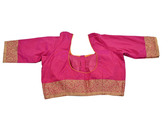 Indian Pre-owned Pink pure silk Hand woven Padded Blouse/Top/Crop L Size Party wear Bollywood