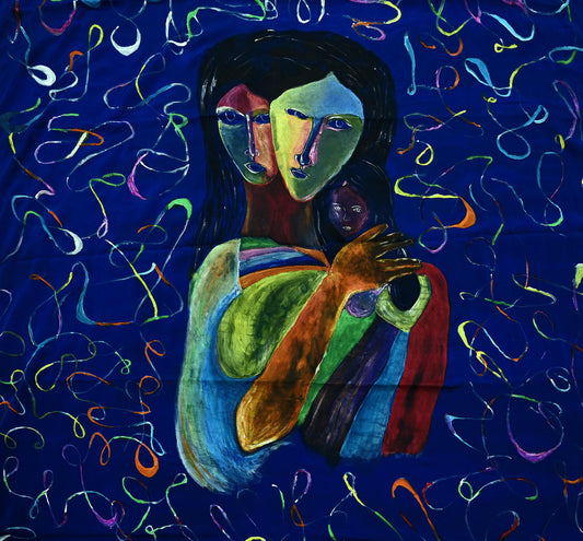 Indian Unique Vintage Pure Crepe silk Hand Painted wall hanging soft Boho Wrap Dressmaking Decor