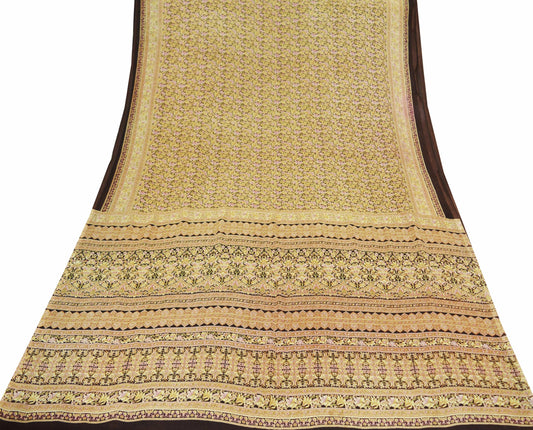 Indian Vintage Sari Brown Pure Georgette Silk Digital Printed Saree Sewing 5yard Craft Soft Floral Crafting Dress Making