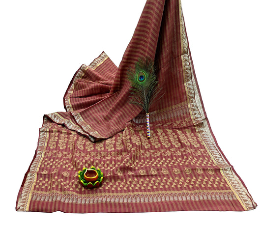 Indian Vintage Sari Brown Pure Cotton Hand Woven Baluchari Saree 5yard Ethnic Humans Fringes