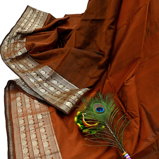Indian Vintage Sari Brown Mysore Silk Woven Sarees Craft Fabric 5Yd Ethnic South silk Dress Making Crafting Upcycle Quilting Zari Border