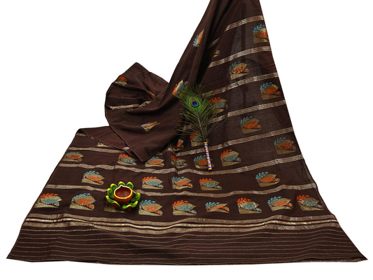 Indian Vintage Sari Brown Pure Cotton Hand Woven Baluchari Saree 5yard Ethnic Lady Design