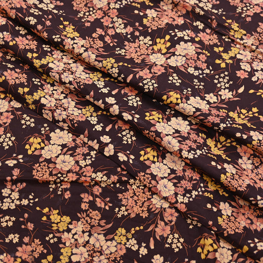Indian Vintage Sari Brown Printed 100% Pure Silk Sarees 5yd Sewing Craft Fabric Soft Dress Making Wrap Floral Upcycle Quilting Crafting Used