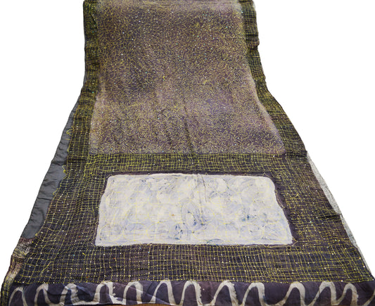 Indian Vintage Sari Dusty Purple Pure Crepe Silk Tie-dye Hand Embroidered Kantha Saree 6yard Sewing Floral