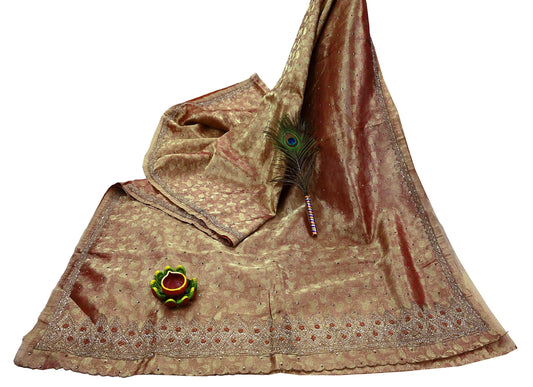 Indian Vintage Sari Golden Tissue Hand Embroidered Sarees Craft Fabric 7Yd Sewing Soft Ethnic Zardozi/Zari Dress making Crafting Upcycle