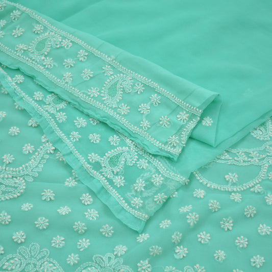 Indian Vintage Sari Green Georgette Handmade Chikankari Sarees Craft Fabric 5Yd Ethnic Floral Dress making Bollywood sari Crafting