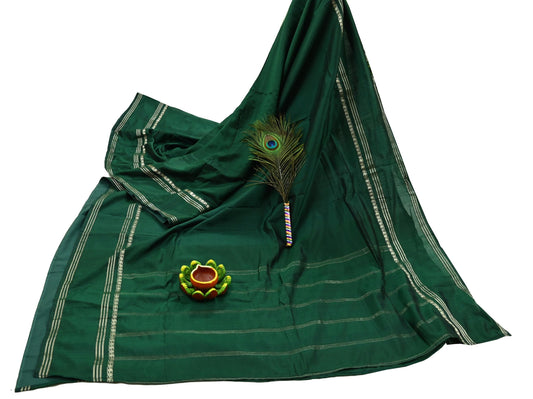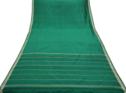 Indian Vintage Sari Green Mysore Silk Woven Sarees Craft Fabric 5Yd Ethnic South silk Dress Making Crafting Upcycle Quilting Zari Border