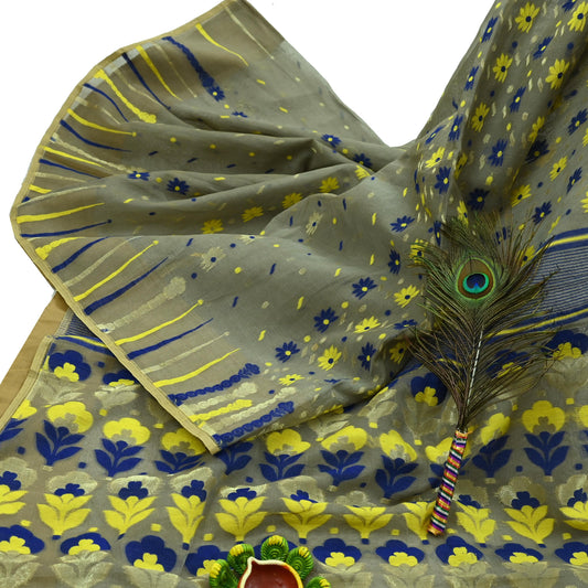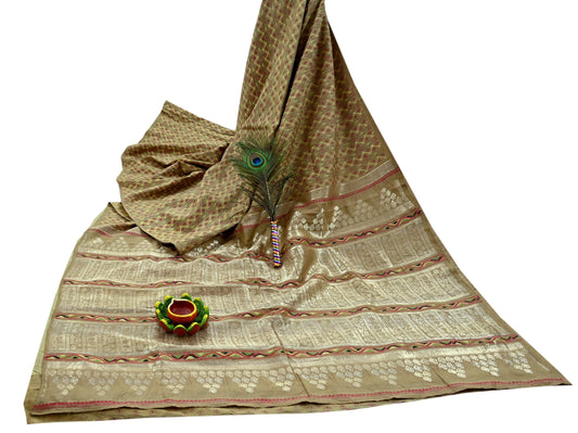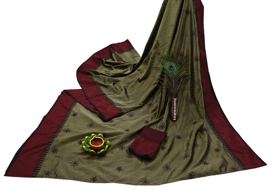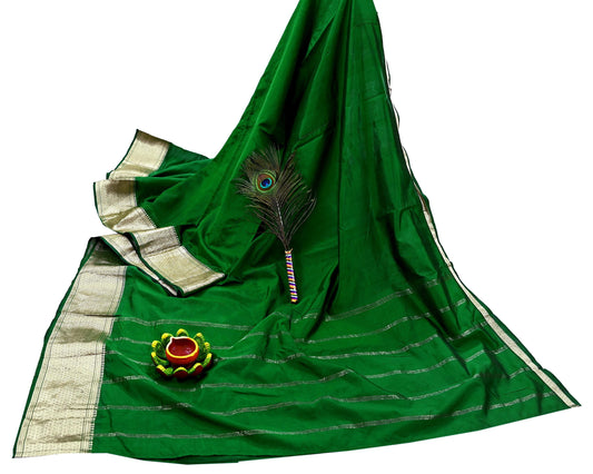 Indian Vintage Sari Green Cotton Hand Woven Saree Zari 5Yd Craft Fabric Sewing Soft Floral Ethnic Zari Dress making Crafting Quilting