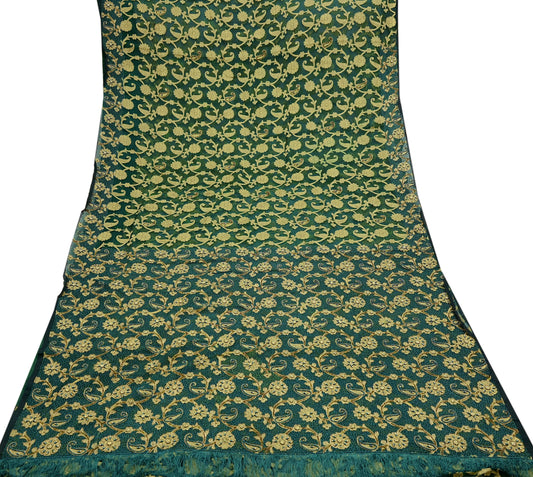 Indian Vintage Sari Green Heavy Wedding Pure Satin Silk Woven Banarasi Tanchoi Saree 5Yd Ethnic Craft Fabric Upcycle Bridal Heavy Sarees