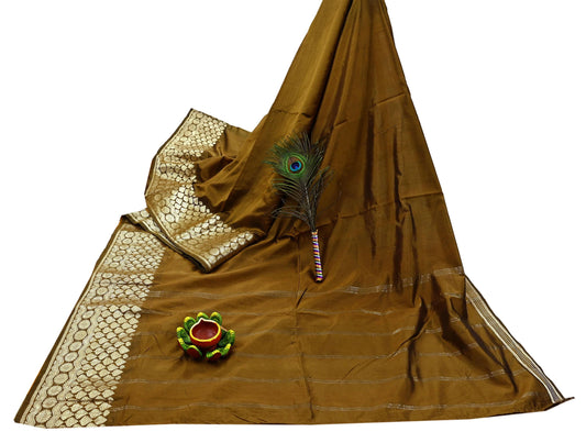 Indian Vintage Sari Green Heavy Wedding Pure Satin Silk Woven Banarasi Brocade Saree Golden Zari 5Yard