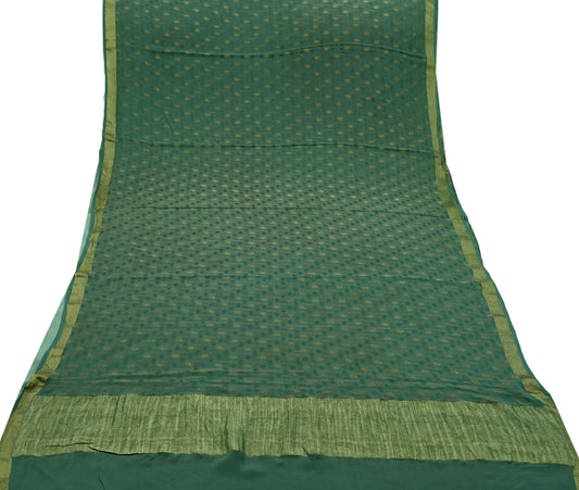 Indian Vintage Sari Green Pure Georgette Silk Block Printed Sarees Craft Fabric Sewing 5Yd Soft Zari Dress Making Crafting Quilting Upcycle