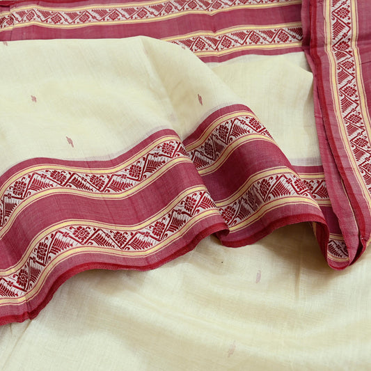 Indian Vintage Sari Ivory Pure Cotton Bengali Handloom Tant Sarees Craft Fabric 5Yd Sewing Soft Crafting Dress making Upcycle Quilting