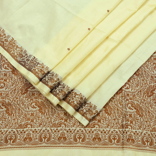 Indian Vintage Sari Ivory Pure Silk Printed Saree 5yard Sewing Craft Fabric DressMaking Soft Copper Zari