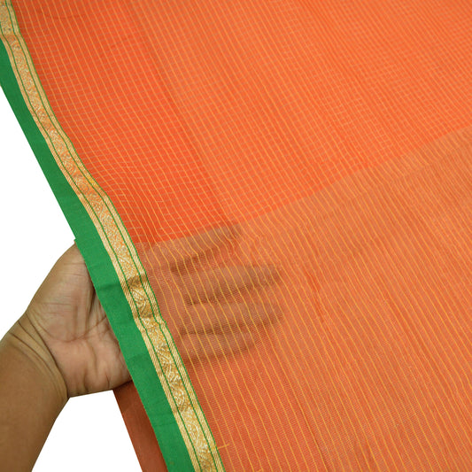 Indian Vintage Sari Orange Pure Cotton Hand Woven Sarees Craft Fabric 5Yd Sewing Soft Crafting Dress making Upcycle Quilting Zari