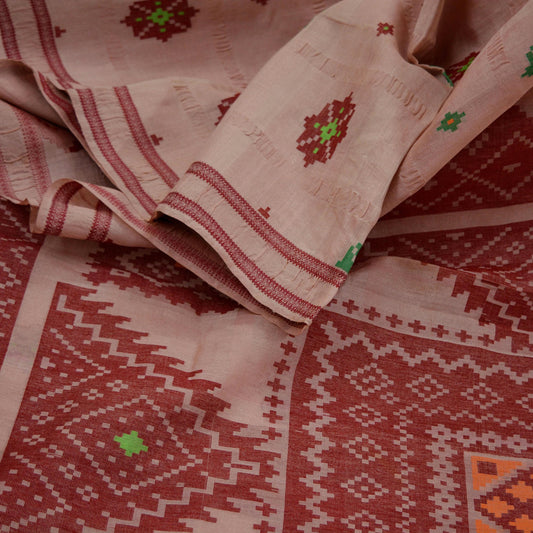 Indian Vintage Sari Peach & Cream 100% Pure Silk Hand Woven Sarees Craft Fabric 5Yd Ethnic Sewing Dress making Crafting Quilting Upcycle