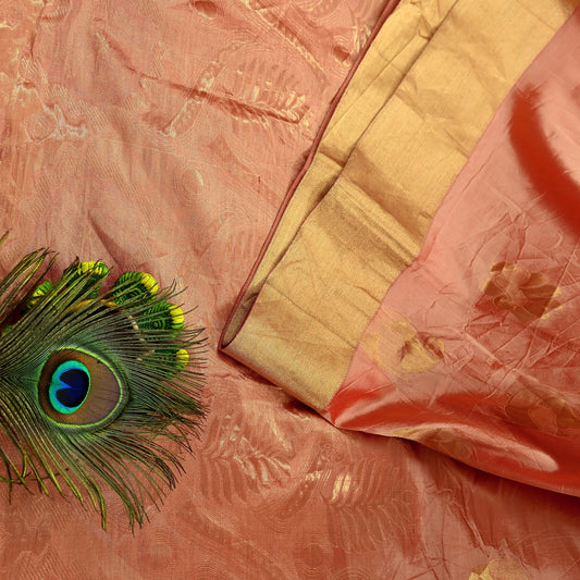 Indian Vintage Sari Peach Blend Silk Woven Kanjivaram Saree Zari 5Yd Ethnic Craft Fabric Dress making For Crafting Quilting