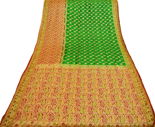 Indian Vintage Sari Purple & Green Pure Silk Printed Sarees 5yd Sewing Quilting Craft Fabric Dress Making Soft Zari Border Crafting Used