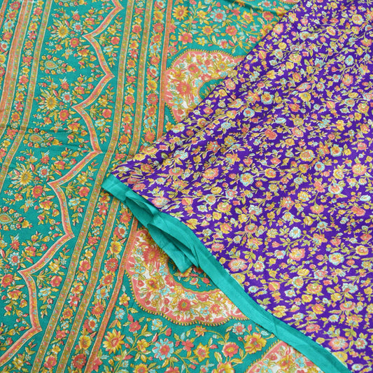 Indian Vintage Sari Purple & Green Pure Silk Printed Saree 5yd Sewing Quilting Craft Fabric Dress Making/ Designing Soft Upcycle Used Floral