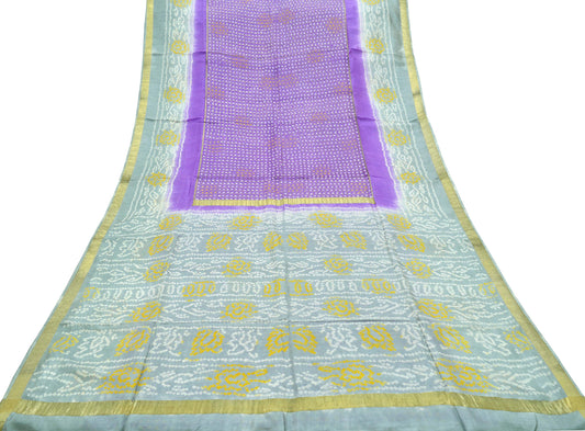 Indian Vintage Sari Purple & Gray Pure Silk Hand Woven Bandhani Sarees 5yd Craft Fabric Sewing Zari Ethnic Bollywood sarees Upcycle Used