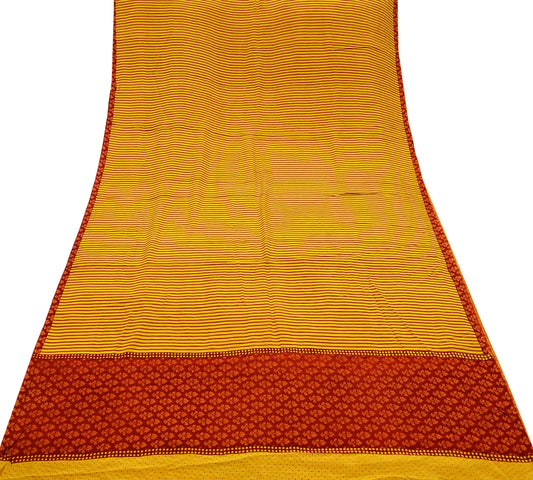 Indian Vintage Sari Red & Yellow Pure Silk Printed Saree Fabric 5yd Sewing Craft Fabric DressMaking Soft