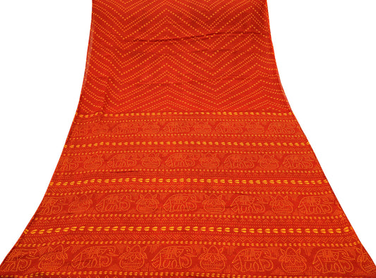 Indian Vintage Sari Red Pure Georgette Silk Printed Sarees Craft Fabric Sewing 5Yard Soft Light Dress Making Abstract