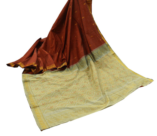 Indian Vintage Sari Rusty Mysore Silk Woven Sarees Craft Fabric 5Yd Ethnic South silk Dress Making Crafting Upcycle Quilting Zari Border