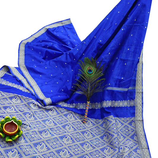 Indian Vintage Sari Royal Blue 100% Pure Silk Hand Woven Baluchari Sarees Craft Fabric 5yd Sewing Dress Designing Crafting Quilting Upcycle