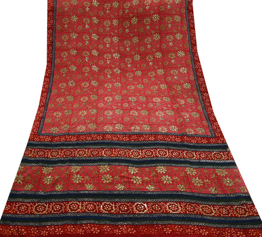Indian Vintage Sari Red Pure Silk Printed Saree Fabric 5yd Sewing Craft Fabric Dress Making Soft Wrap Floral Crafting Quilting Upcycle