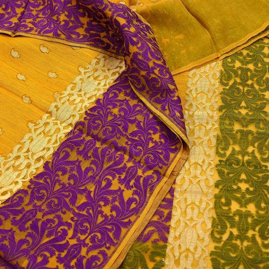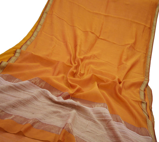 Indian Vintage Sari Saffron Hand Woven 100% Pure Organza Silk Saree Craft Fabric 5Yd Dress Making Crafting Quilting Upcycle