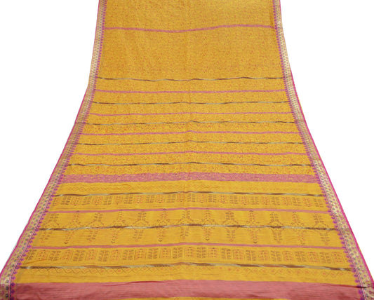 Indian Vintage Sari Yellow Pure Crepe Silk Tie-Dye Printed Sarees Craft Fabric 6yd Sewing Wrap Upcycle Quilting Crafting Dress designing