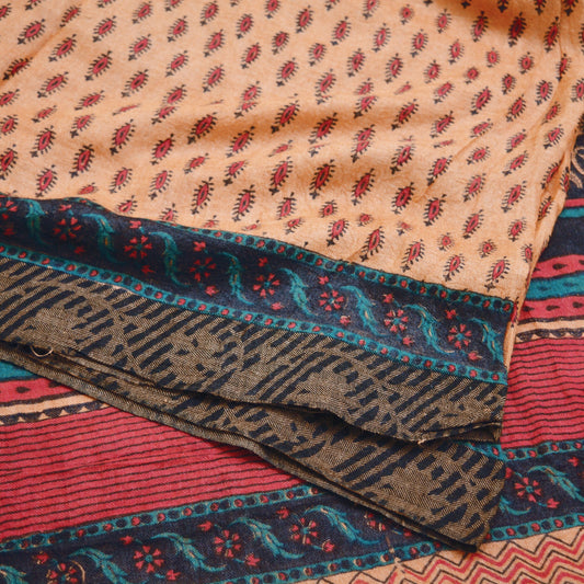 Vintage Peach Heavy Saree Pure Woolen Woven Printed Indian Sari Soft Warm Fabric 5Yard Floral Woven Border