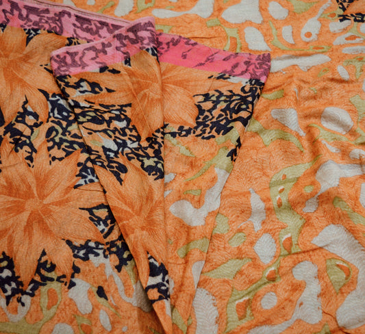 Vintage Multi Saree 100% Pure Georgette Silk Printed Sari Sewing 5yd Craft Soft Dress Designing for Crafting Floral Quilting Upcycle