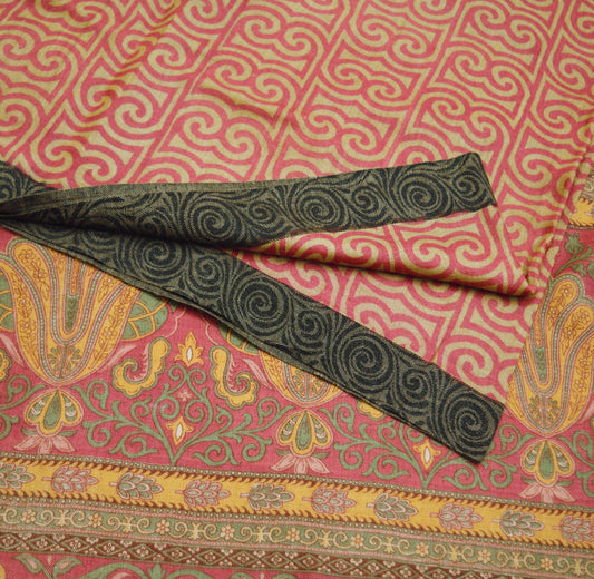 Vintage Pink & Beige Heavy Saree Pure Woolen Woven Printed Indian Sari Soft Warm Fabric 5Yard Floral Woven Border
