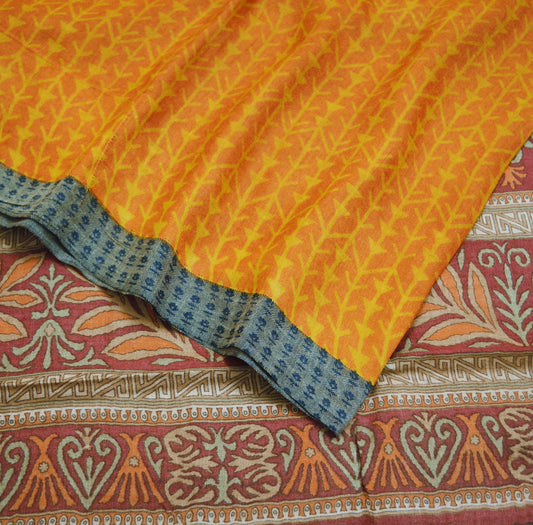 Vintage Orange 100% Pure Silk Hand Woven Design Fabric 23"X45" Floral Design Crafting Sewing Quilting