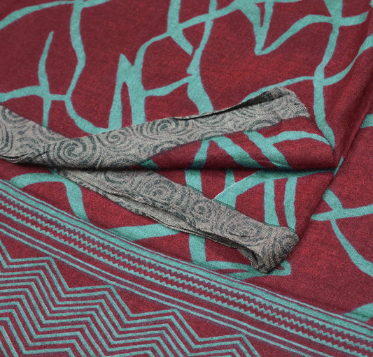 Vintage Maroon Saree Woven Printed Pure Woolen Indian Sari Fabric 5Yard Indian Sari Soft Floral Warm