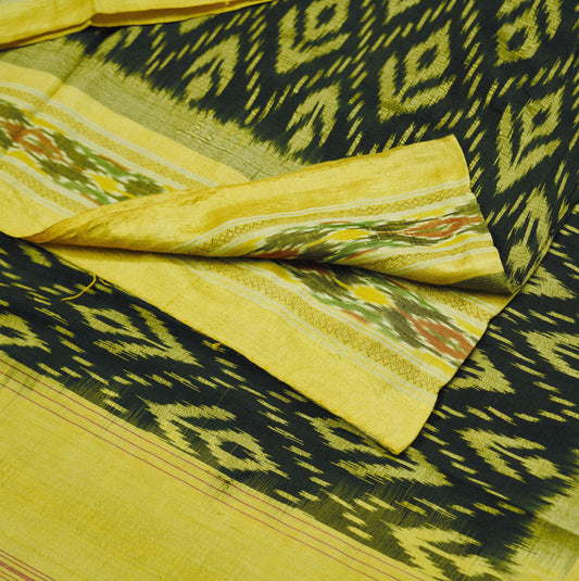 Indian Vintage Black & Mustard Hand woven Sambalpuri Ikat Saree Pure Cotton Indian Sari Fabric 5Yard Ethnic Chackra Border
