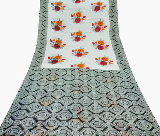 Indian Vintage Black & White Saree Printed Pure Cotton Indian Sari Craft Fabric 5Yd Sewing Soft Sarong Wrap Boho Floral Quilting Crafting