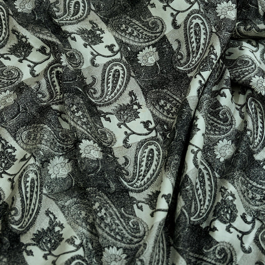 Indian Vintage Black & White Saree Printed Pure Cotton Indian Sari Craft Fabric 5Yd Sewing Soft Sarong Wrap Boho Paisley Quilting Crafting