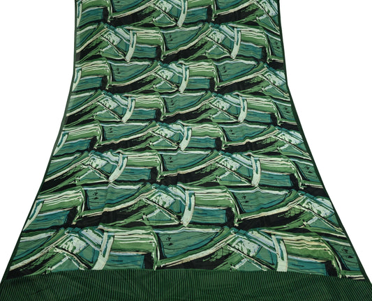 Indian Vintage Black & Green Saree 100% Pure Georgette Silk Printed Sari Sewing 5yd Craft Soft Dress Designing for Crafting Floral