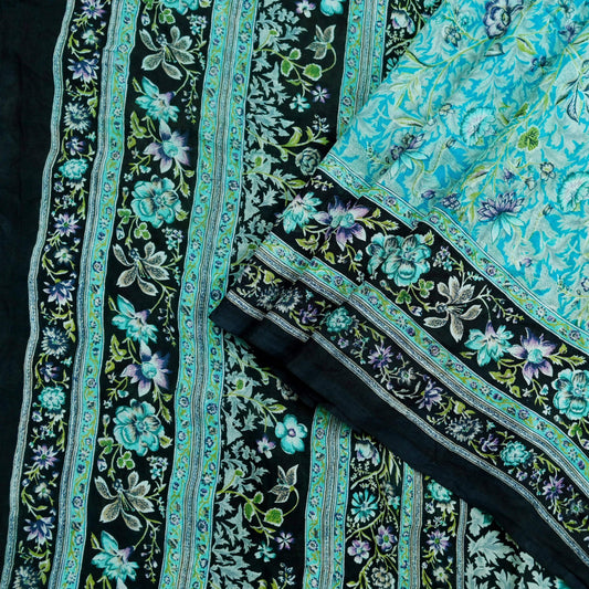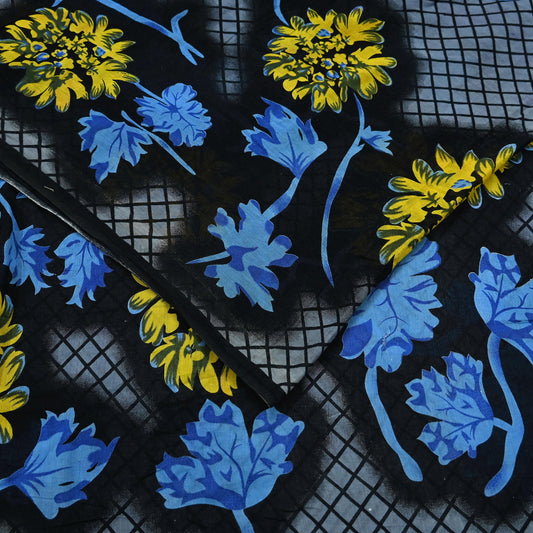 Indian Vintage Black & Blue Sarees Pure Silk Printed Indian Sari 6yd Sewing Craft Fabric DressMaking Floral Soft Crafting Quilting