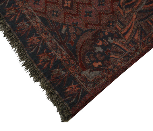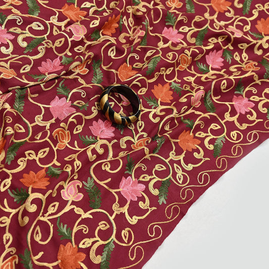Vintage Stole maroon woolen Handmade Ari work Long Throw Warm Stole Floral Design Fringes