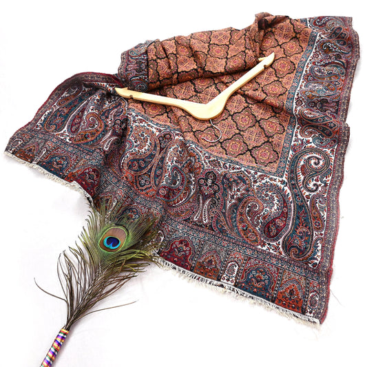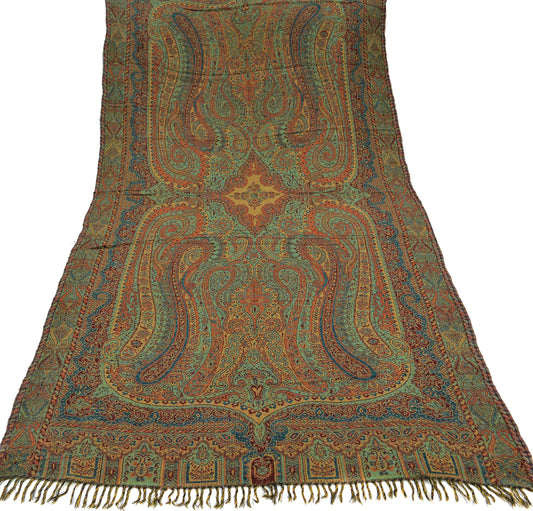 Vintage Stole Ivory woolen Handmade Jamawar work Long Throw Warm Stole Paisley Design Fringes