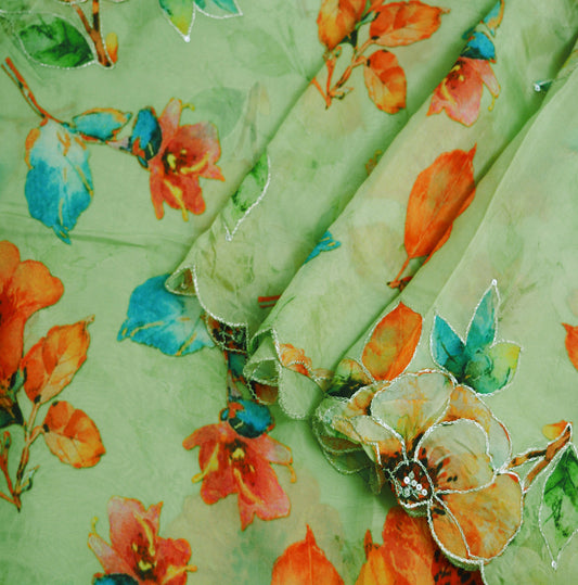 Women Indian Vintage Dupatta Green & beige Long Stole Pure silk Digital Printed Dupatta Veil Scarves soft Boho Wrap Dressmaking Floral