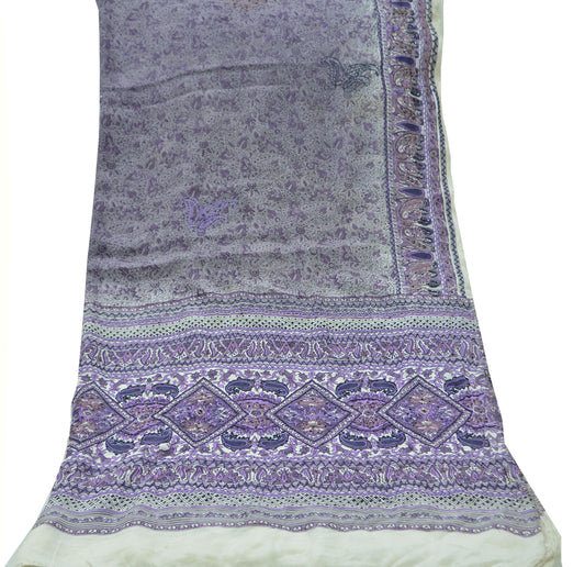 Women Indian Vintage Purple & Ivory Dupatta Long Stole Pure Crepe silk Printed Embroidered Dupatta Veil Scarves soft Boho Wrap